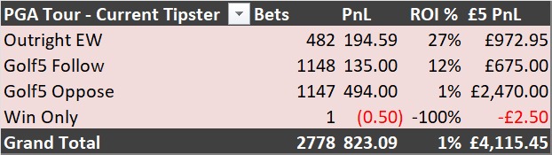 We started tipping Golf in 2012 and backing every selection we've ever published for a £5 stake would have yielded over £5,600 profit so far.